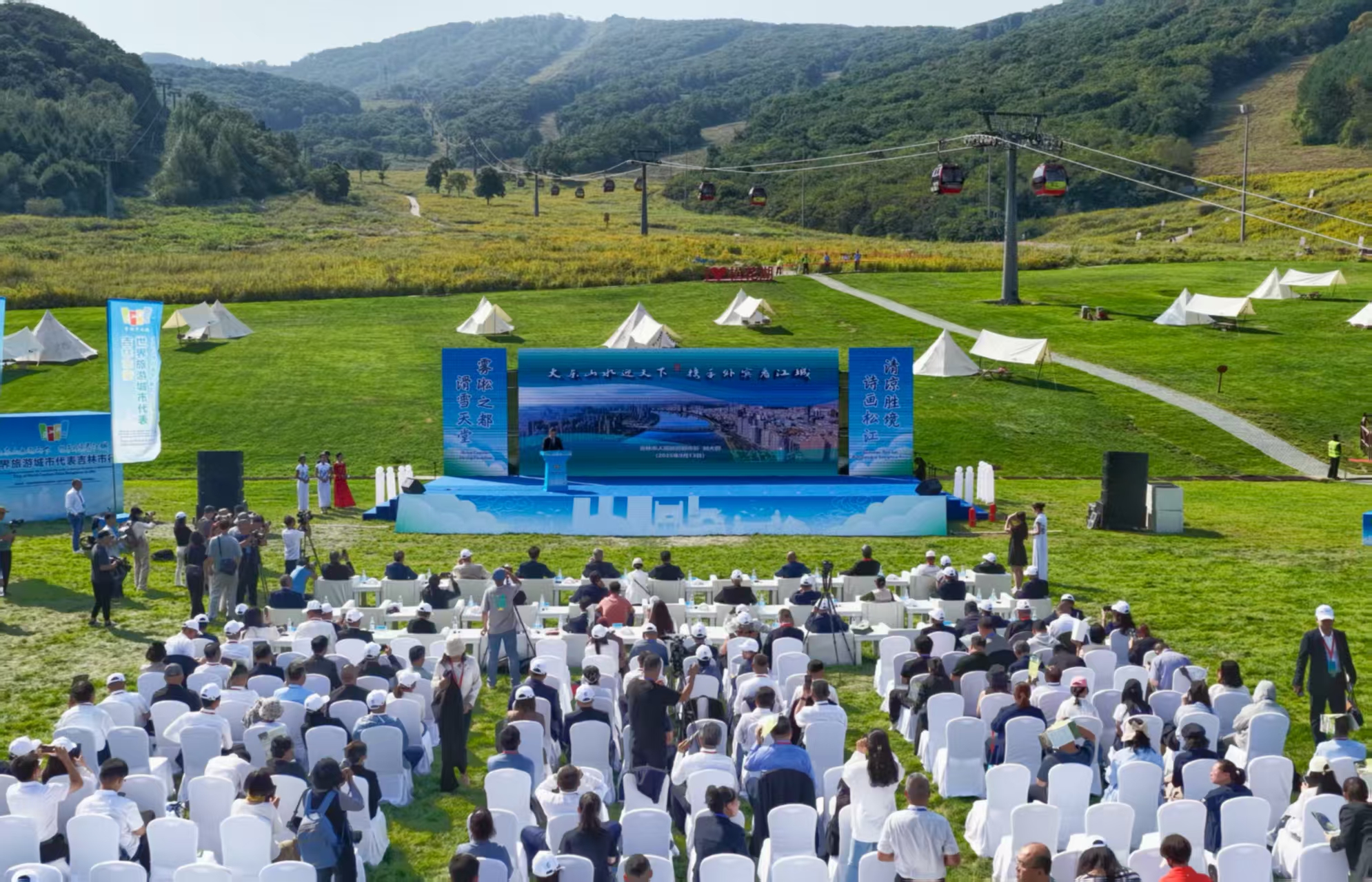 9월 13일, “대동산수로 천하를 맞이하며 외빈과 함께 강성 구경”을 슬로건으로 한, 세계 관광도시 대표 지린시 방문 협력교류 프로모션 컨퍼런스가 송화호 관광리조트에서 개최됐다. 22개 국에서 온 30여 명의 세계 관광 도시 대표 및 성·시 관련 부서 책임자 150여 명이 경치가 아름다운 청산화해 속에서 함께 강성(지린시)의 풍채를 감상하고, 문화관광 협력을 논의하며, 발전 대계를 함께 모색했다.