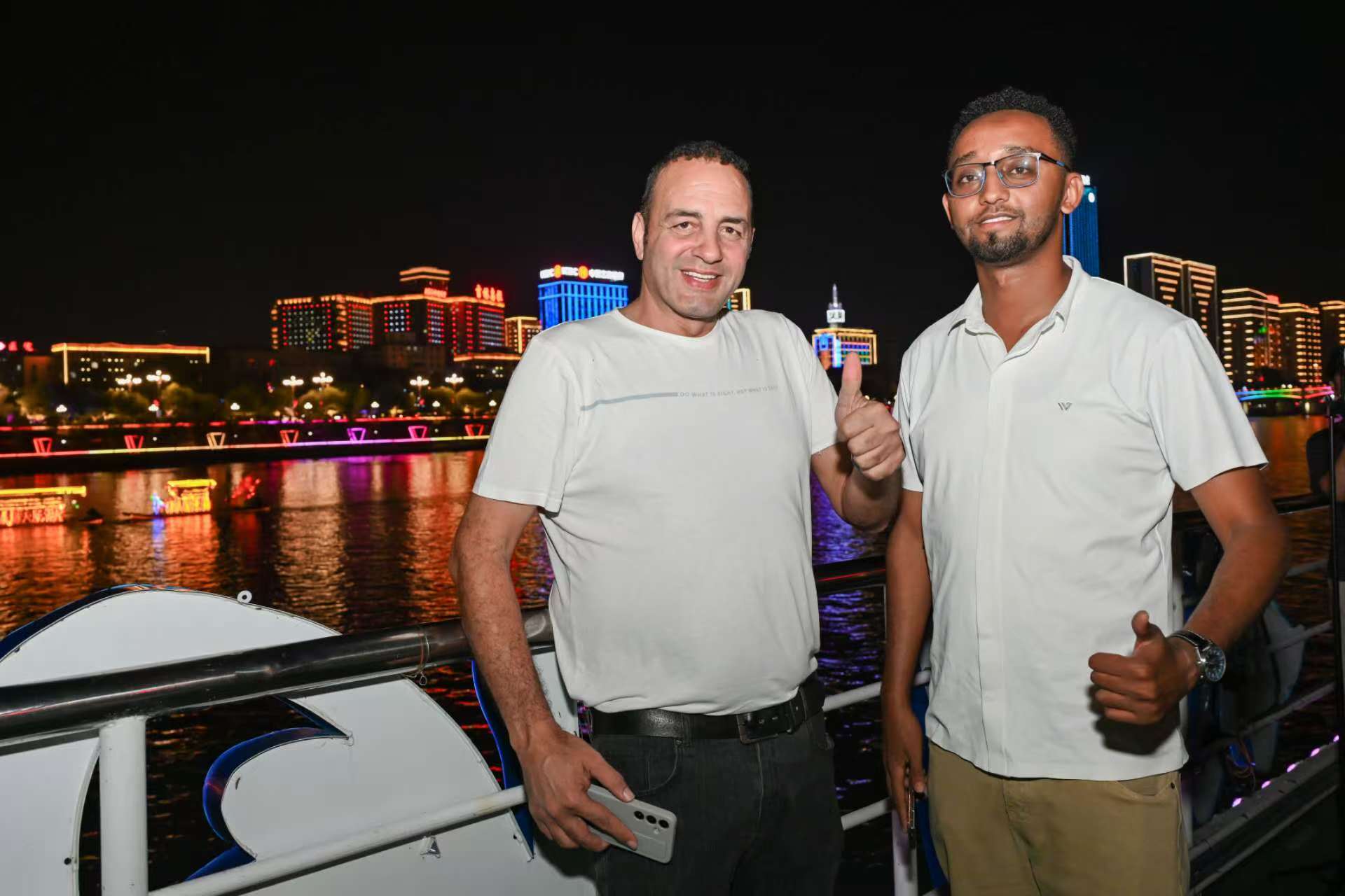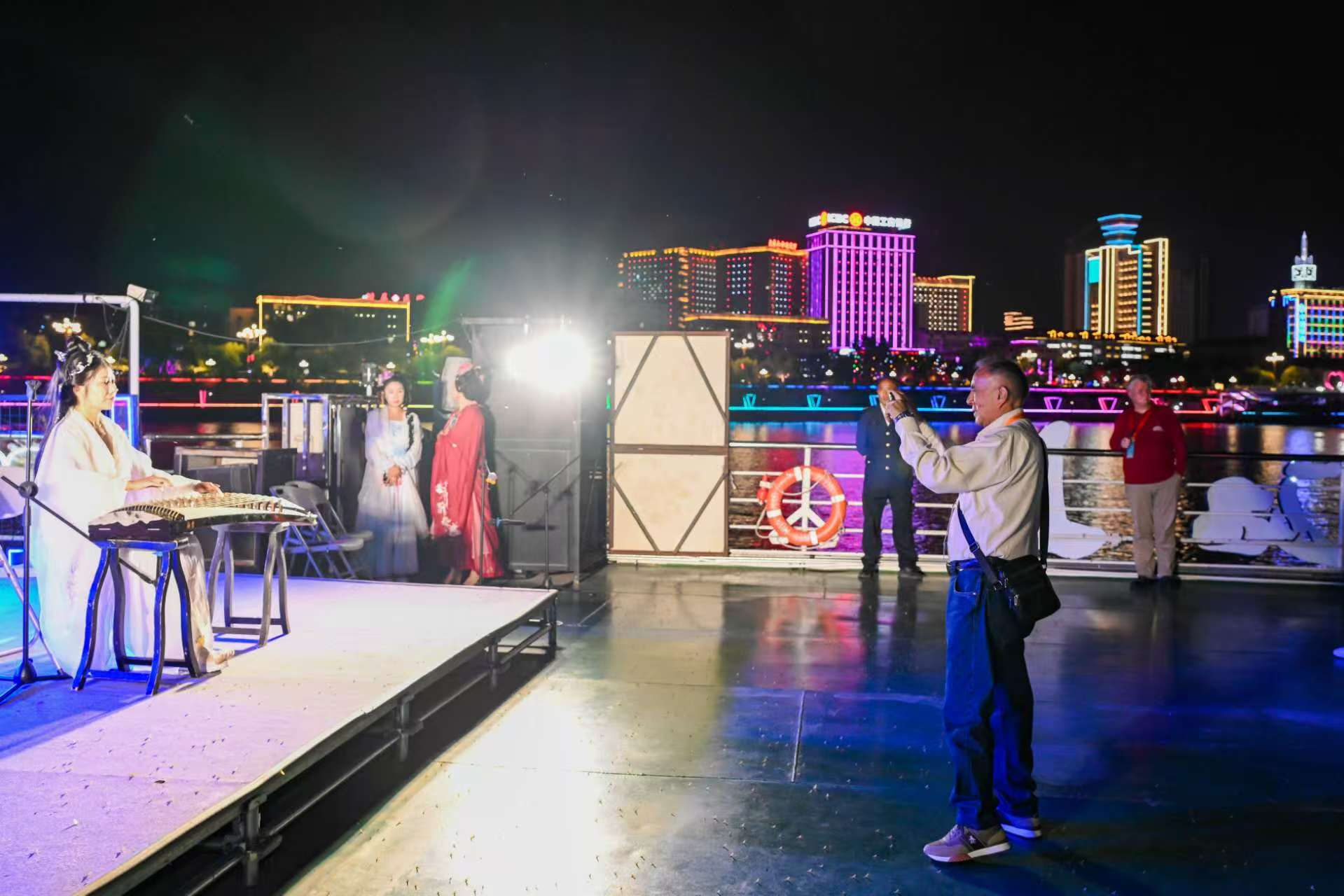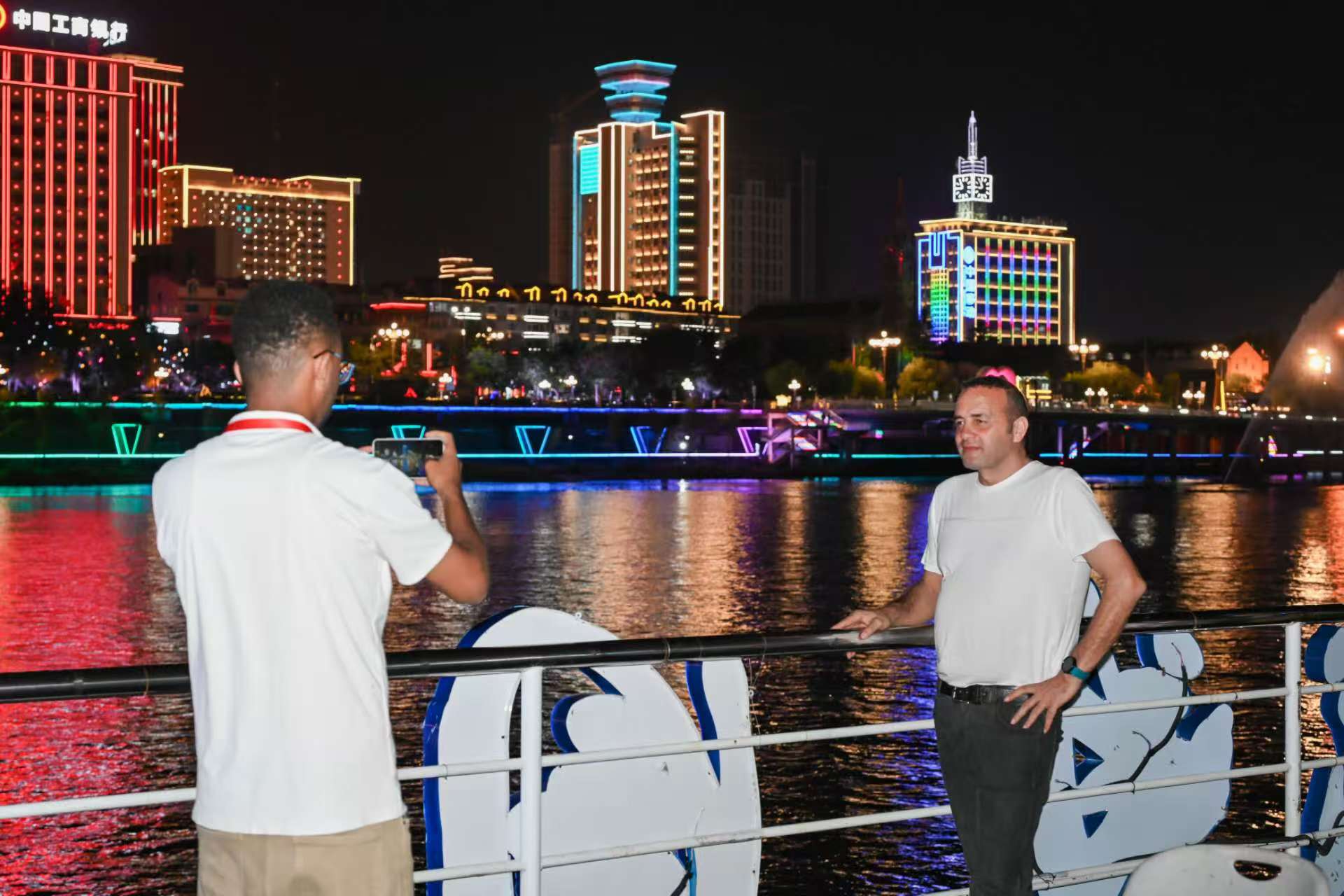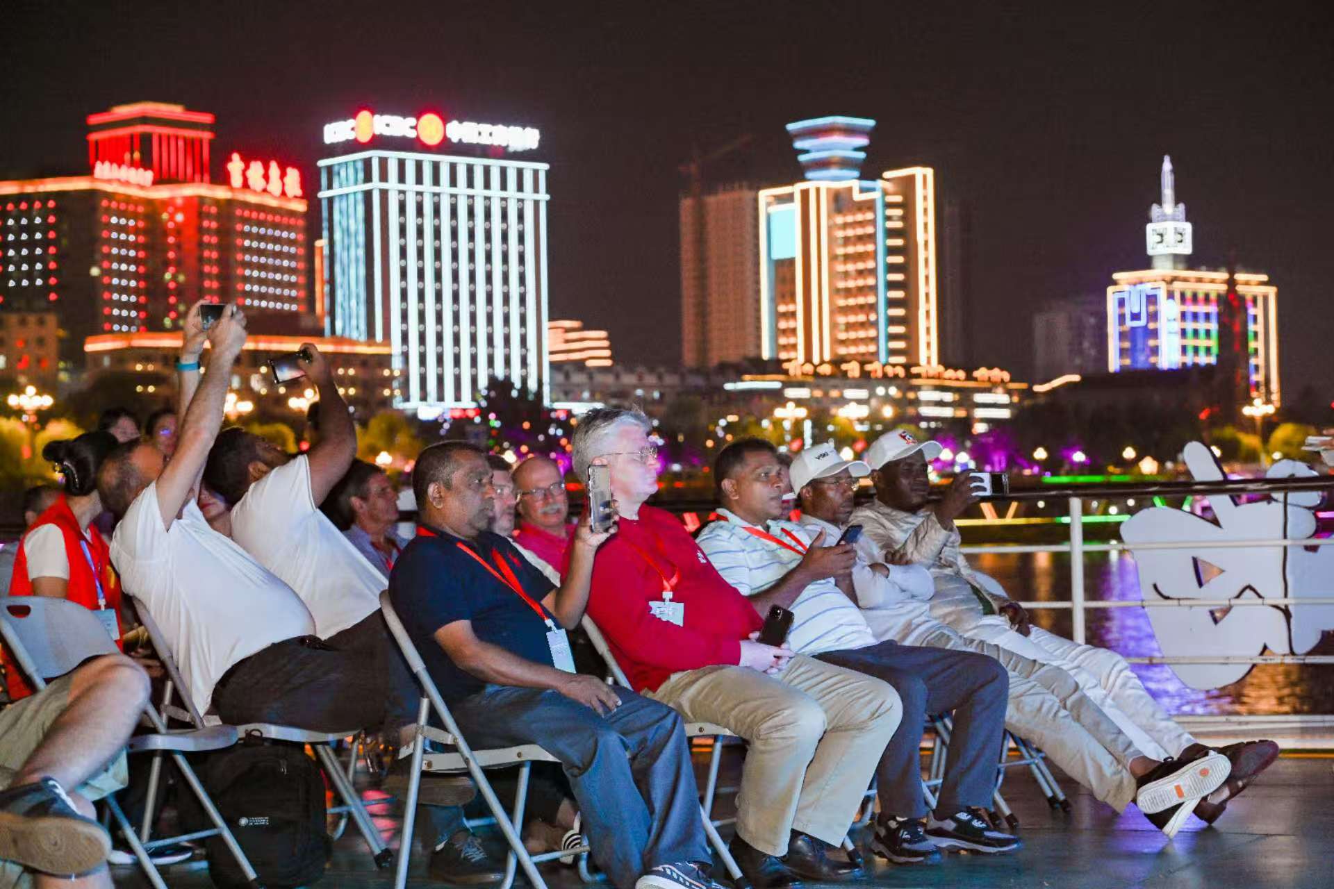 지린시 송화강 야경을 즐기고 있는 세계 관광도시 대표들