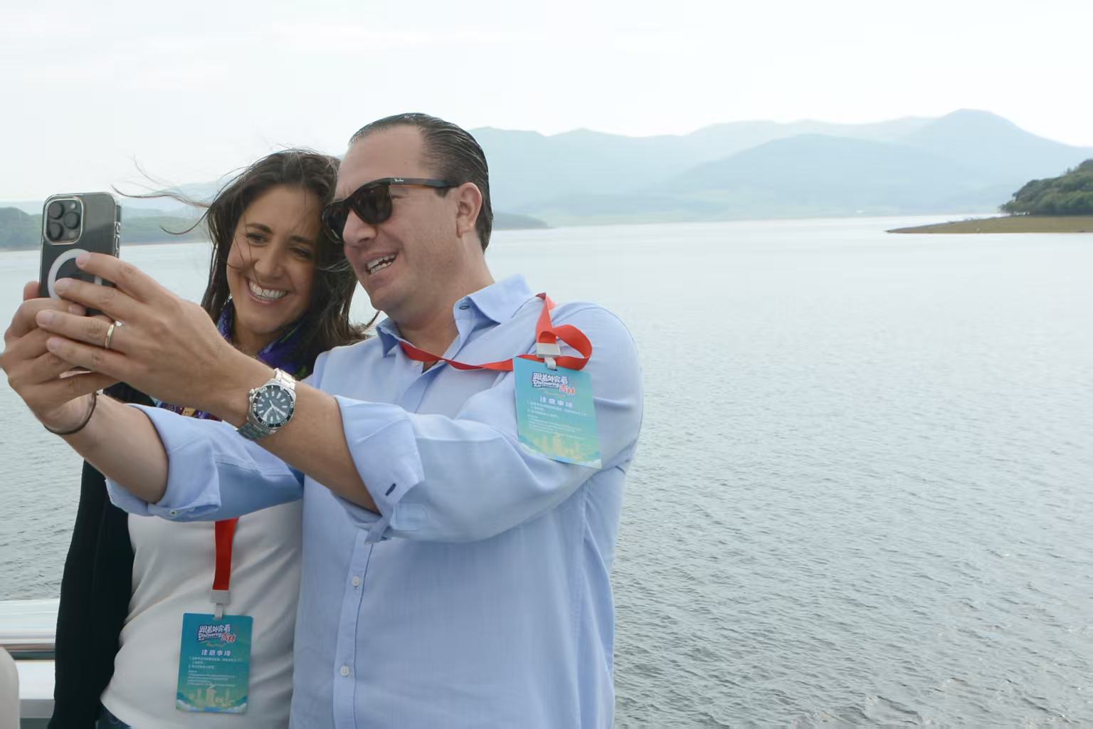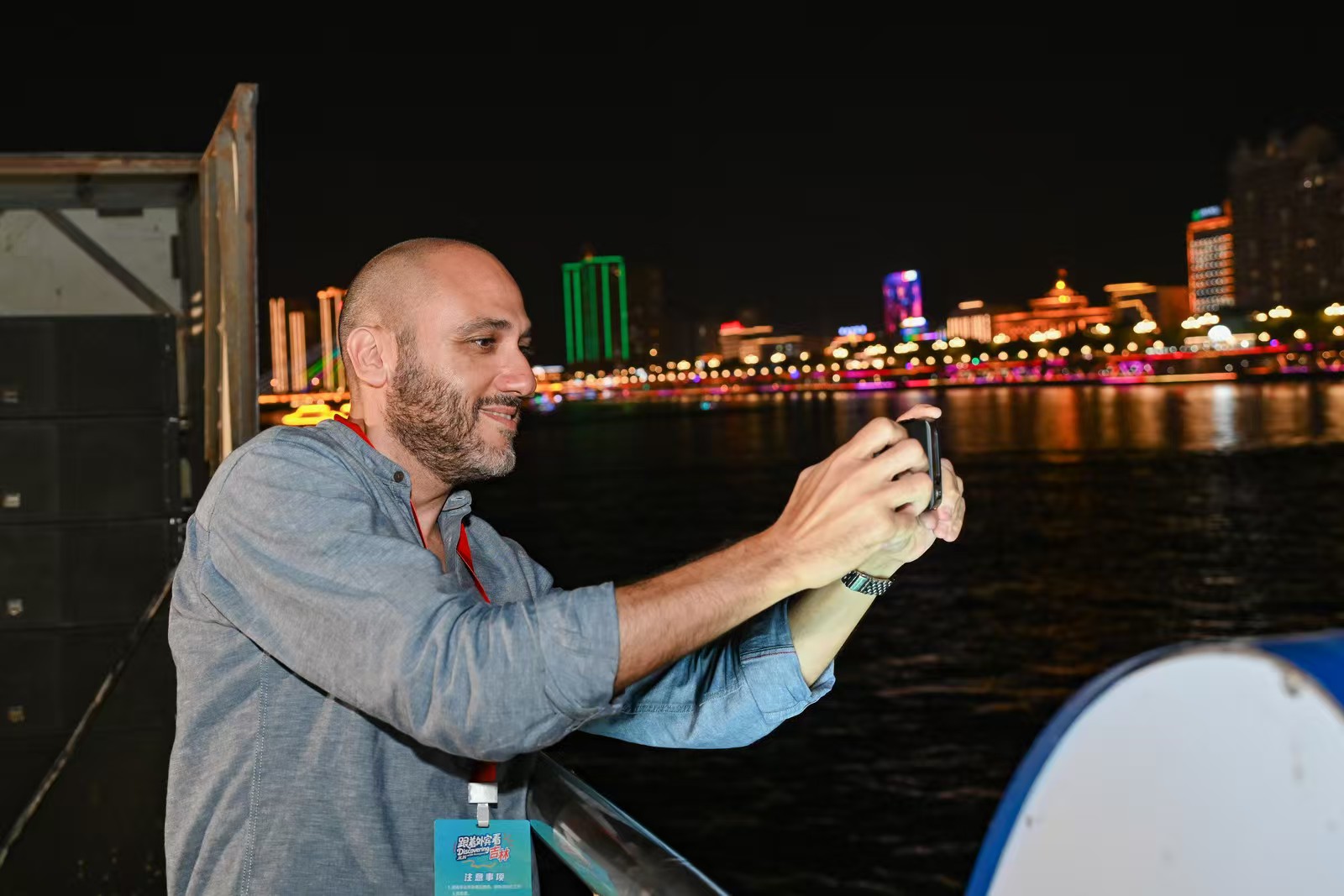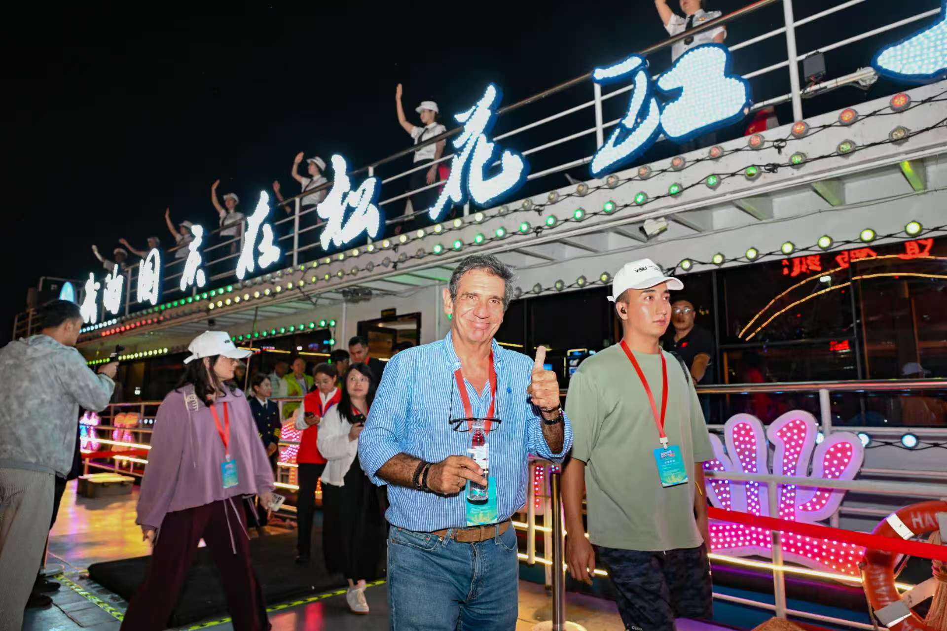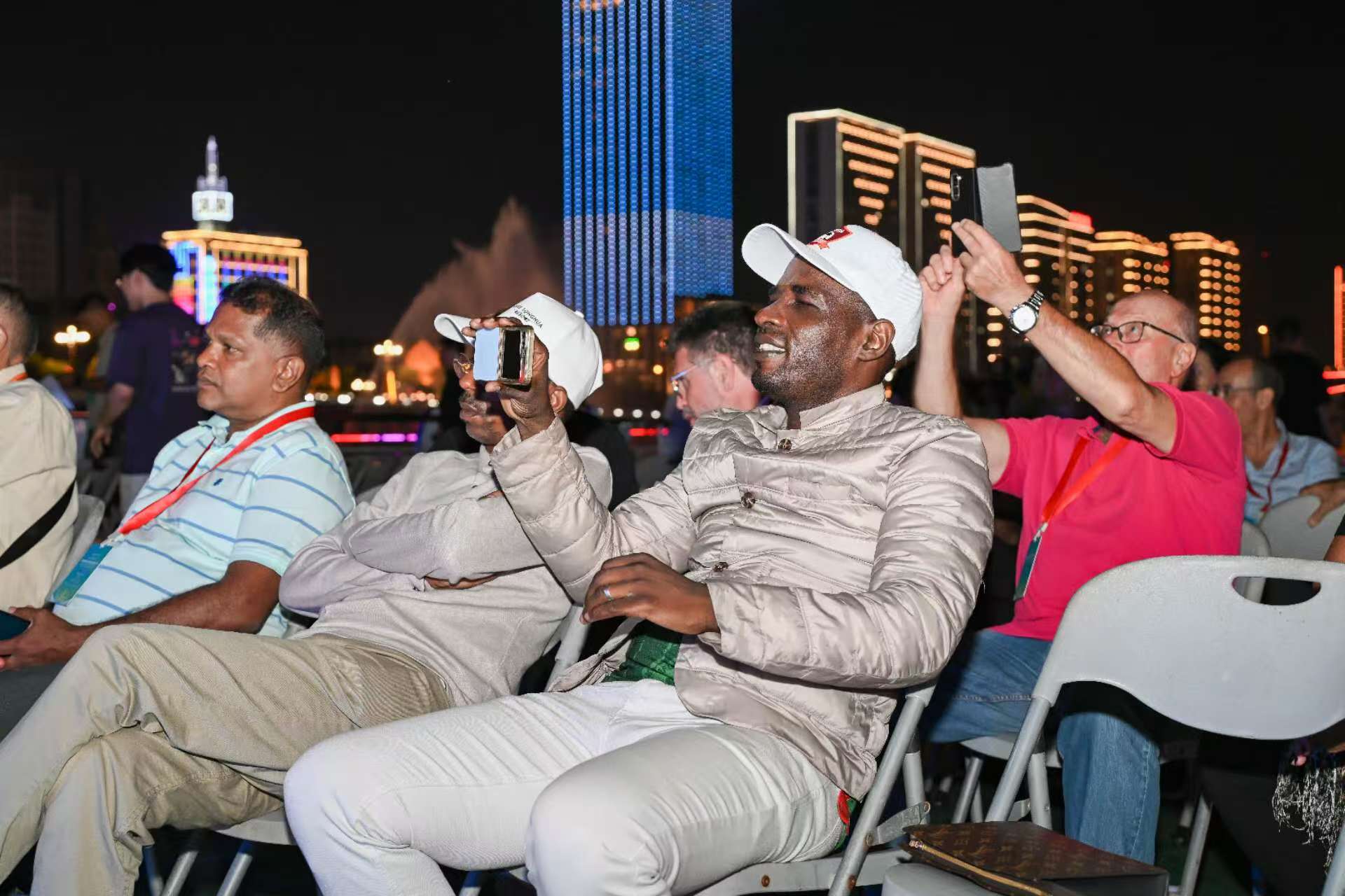 지린시 송화강 야경을 즐기고 있는 세계 관광도시 대표들