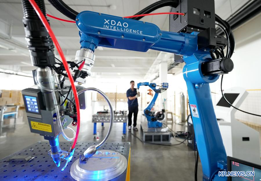 지난달 11일 허베이(河北)성 친황다오(秦皇岛)시 하이강(海港)구 소재의 한 로봇 생산 기업에서 작업 중인 직원. (사진/신화통신)
