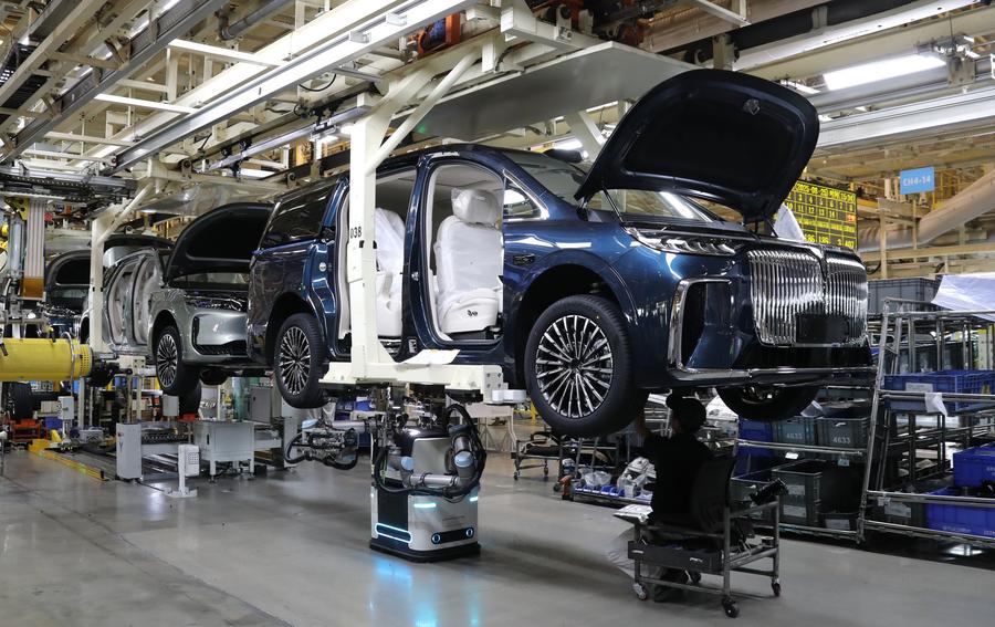 8월 25일 국가급 스마트 제조 시범 공장인 란투(岚图·Voyah)자동차 우한(武汉) 공장 생산라인. (사진/신화통신)