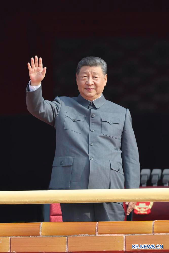 3일 '중국인민항일전쟁 및 세계반파시스트전쟁 승리 80주년' 기념대회가 베이징에서 성대하게 거행됐다. 시진핑 중국공산당 중앙위원회 총서기, 국가주석, 중앙군사위원회 주석이 톈안먼(天安门) 성루에서 손을 흔들며 인사를 하고 있다. (사진/신화통신)